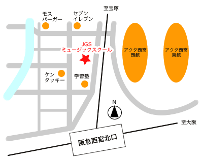 ジャパンギタースクール各校の周辺地図と情報です。お越しの際に迷われましたらお気軽にご連絡ください。